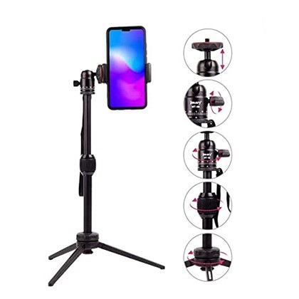 سه پایه رومیزی جی مری JMARY MT-68 به همراه هولدر موبایل، با تحمل وزن تا 3 کیلوگرم، ارتفاع جمع شده 26.5 سانتی متر، ساخته شده از آلیاژ آلومینیوم