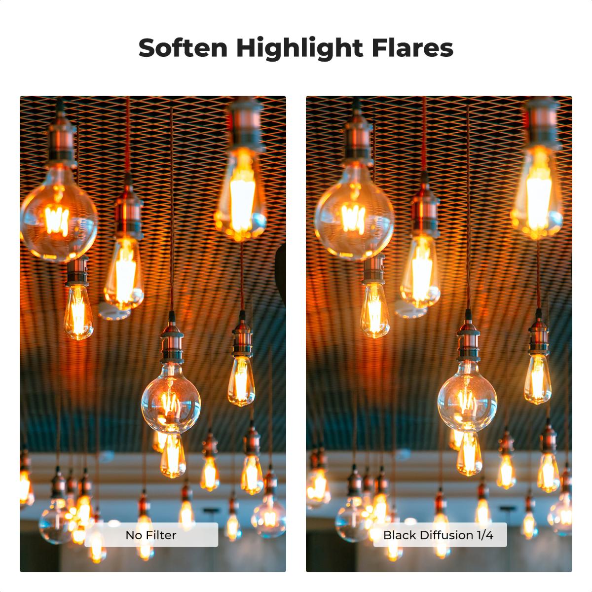 این فیلتر با کاهش کنتراست و نرم کردن نورهای قوی، جلوهای لطیف و سینمایی به تصاویر شما میبخشد. نسبت 1/4 نشاندهنده میزان تاثیرگذاری ملایم آن است؛ به طوری که هایلایتها (نورهای برجسته) را نرم میکند بدون اینکه جزئیات را از بین ببرد. این ویژگی باعث میشود پوستها در عکاسی پرتره صافتر و طبیعیتر به نظر برسند و نورپردازیها جلوهای هنری پیدا کنند.