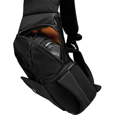 کیف کوله پشتی تک بند دارای ظرفیت یک دوربین DSLR،با 1یا 2 لنز کیت ،فلاش،لوازم جانبی(کابل،باتری،شارژر،کارت حافظه)،قابلیت دسترسی سریع به وسایل.