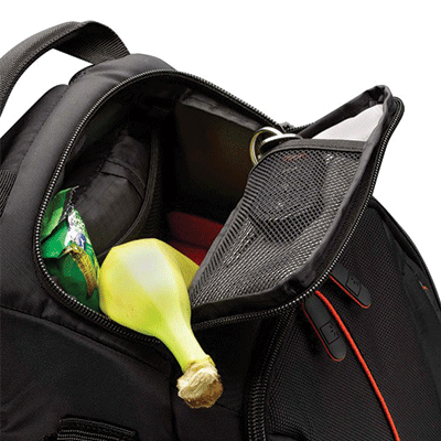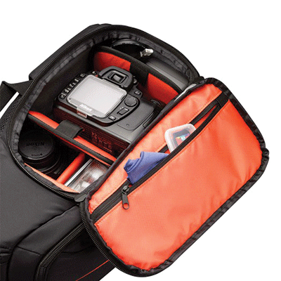کیف کوله پشتی زیبا و دارای ظرفیت یک دوربین DSLR با لنز زوم استاندارد متصل و یا یک دوربین DSLR با گریپ به صورت عمودی،لنز اضافی،فلاش و لوازم جانبی،محفظه تقسیم بندی قابل تنظیم،جیب مخصوص برای گذاشتن فیلتر و کارت حافظه ، و محفظه ای کوچک در قسمت بالایی کیف برای قرار دادن وسایل شخصی کوچک ( مانند کیف پول و عینک و ...)