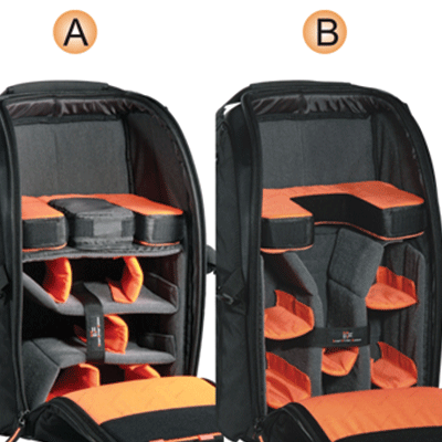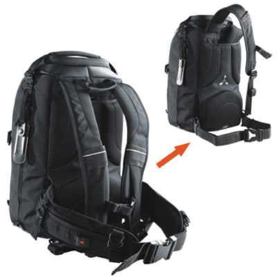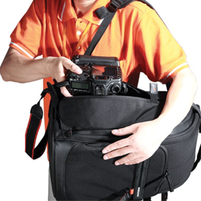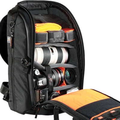 کیف کوله پشتی زیبا و کوچک دارای ظرفیت1 دوربین DSLR حرفه ای با گریپ و لنز متصل شده ( 200-70 f/2.8) ،و 3تا 5 لنز اضافی،2 فلاش، لوازم جانبی (کارت حافظه، کابل، باتری و شارژر)، جای تبلت یا ipad ،سه پایه .