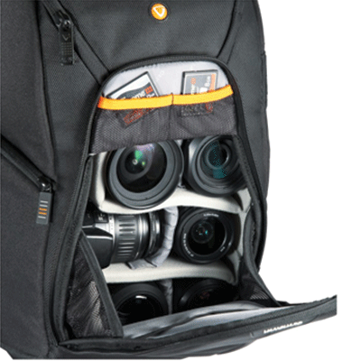 کوله پشتی مناسب برای یک دوربین DSLR به همراه 2 یا 3 لنز ، دارای دسترسی آسان از جلو و کنار، محفظه ای در قسمت بالایی کیف برای نگهداری وسایل شخصی ، نگهدارنده سه پایه ، محفظه لب تاپ تا سایز 13 اینچ ، دارای کاور باران