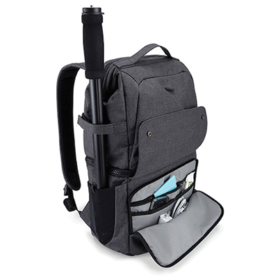 کیف کوله پشتی زیبا دارای ظرفیت یک دوربینDSLR،و 2 لنز و فلاش و لوازم جانبی ،دارای محفظه ای برای ipad،دارای زیپ های بزرگ برای دسترسی آسان،نگهدارنده تک پایه و یا سه پایه کوچک ،دارای دسته برای حمل راحت و بند شانه قابل تنظیم و فضایی برای وسایل شخصی