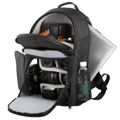 کیف کوله پشتی زیبا دارای ظرفیت یک دوربین DSLR با لنز متصل شده، 3-4 لنز اضافی، فلاش و لوازم جانبی (کارت حافظه، کابل، باتری و شارژر)، قابلیت نصب کیف لنز اضافی،به علاوه یک لپ تاپ تا 14 اینچ واید. رنگ موجود طوسی نارنجی می باشد
