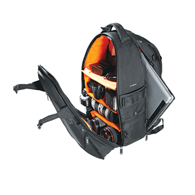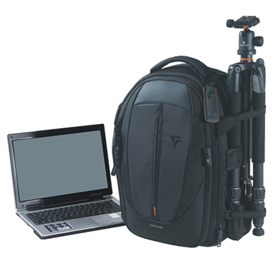 کوله پشتی زیبا و شیک دارای ظرفیت یک دوربین DSLR حرفه ای با لنز متصل شده (f/2.8 تا 70-200MM) و 3 یا 4 لنز اضافی، فلاش و لوازم جانبی (کارت حافظه، کابل، باتری، شارژر)، به علاوه یک لپ تاپ تا 15 اینچ ،tablet،iPad و نگه دارنده سه پایه .