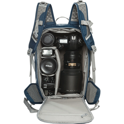کوله پشتی زیبا و سبک در رنگ های مختلف دارای فضا برای یک دوربین DSLRحرفه ای با گریپ و لنز متصل شده f/2.8 300 mm و 1 تا 2 لنز یا فلش اضافی ،لوازم جانبی(کارت حافظه، کابل، باتری، شارژر) ،نگه دارنده سه پایه،تبلت11.75 اینچو دارای کاور باران.
