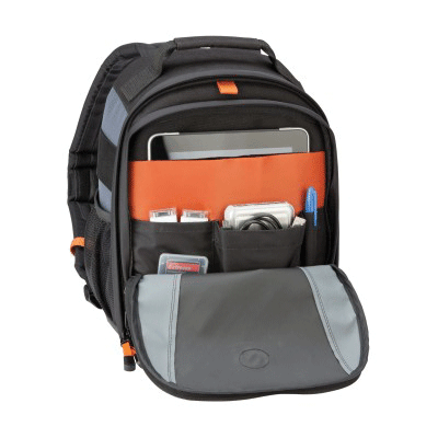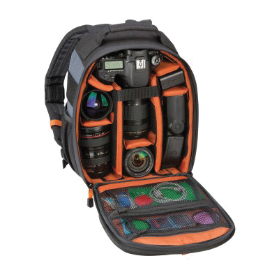 کیف کوله پشتی زیبا و دارای ظرفیت یک عدد دوربین DSLR با لنزمتصل شده ،3 تا 4 لنز اضافی،1 فلاش،لوازم جانبی(شارژر،کابل،فیلتر،کارت حافظه)،تبلت.