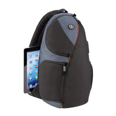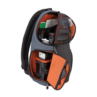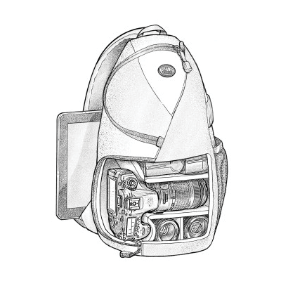 کیف کوله پشتی تک بند زیبا دارای ظرفیت یک عدد دوربین DSLR حرفه ای با لنز متصل شده 6 اینچ،یک عددبدنه دوربین ، 2 لنز اضافی کوچک،یک عدد فلاش،لوازم جانب(شارژر،باتری،کارت حافظه)،تبلت.