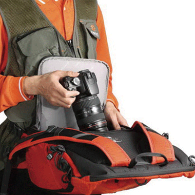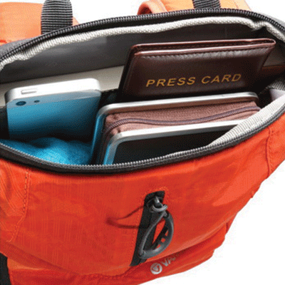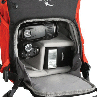 کیف کوله پشتی زیبا دارای ظرفیت 1 عدد دوربین DSLRSحرفه ای با لنز متصل شده، 1 فلاش و لوازم جانبی (کارت حافظه، کابل، باتری و شارژر)، به علاوه یک تبلت کوچک و نگه دارنده تک پایه.