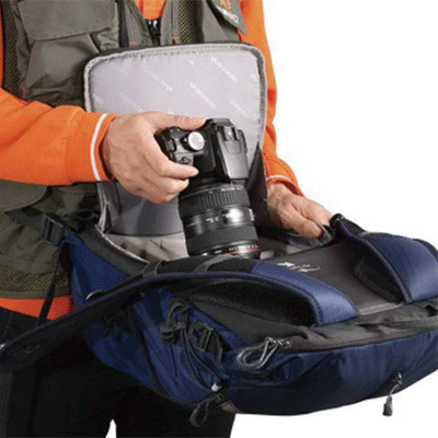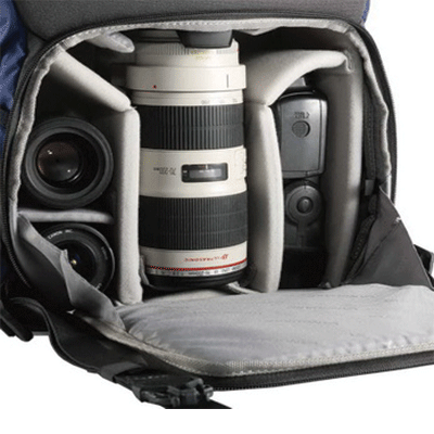کیف کوله پشتی زیبا دارای ظرفیت برای1 عدد دوربین DSLRSحرفه ای با لنز متصل شده،3تا4 لنزاضافی، 1 فلاش و لوازم جانبی (کارت حافظه، کابل، باتری و شارژر)، به علاوه یک تبلت و نگه دارنده تک پایه.
