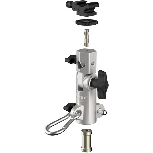 نگهدارندهی چتر و فلاش رویدوربین با قابلیت تحمل وزن ۲۵ کیلوگرم با چرخش ۱۸۰ درجه با اتصال ۱/۴ و ۳/۸ اینچ نر و ماده با اتصال فلزی فلاش رویدوربین