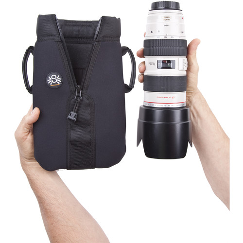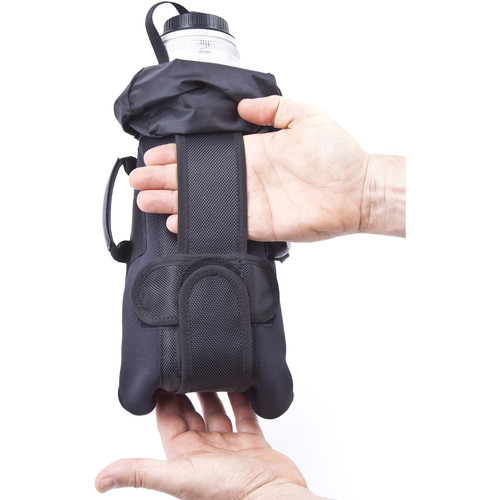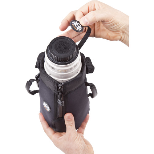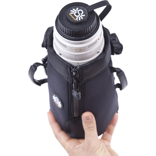 کیف لنز اسپایدر SpiderPro Large مناسب برای حمل لنزهای تله (از قبیل 400-100 به همراه هود) دارای یک زیپ عمودی مقاوم در برابر آب جهت دسترسی آسان به لنز و امکان اتصال کیف لنز به کمربند و همچنین دارای بند نگه دارنده مخصوص کپ پشت لنز
