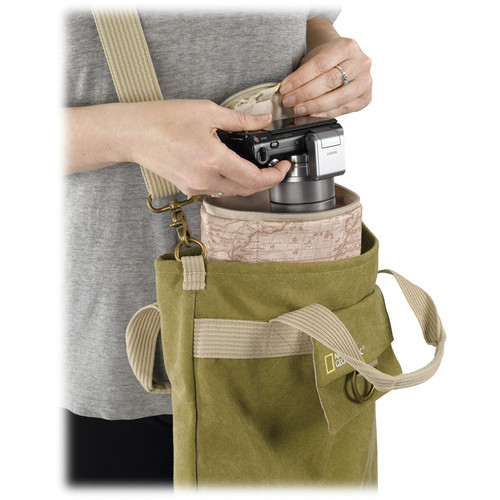 کیف شانه آویز مناسب برای یک دوربین DSLR کوچک با لنز متصل شده ویا یک عدد دوربین بدون آینه با لنز متصل شده دارای محفظه ای برای شارژر و لوازم شخصی.